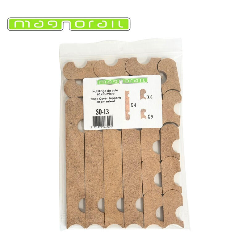 Sættet indeholder 4 lange elementer til lige strækninger, 6 korte elementer med lav åbning og 9 korte elementer med høj åbning, så du kan skabe 20 cm i en lige linje , 20 cm i sving , og den resterende del kan justeres i henhold til din rute.