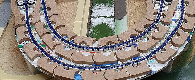 Sættet er specielt designet til at dække 60 cm skinne i kurver , hvilket svarer til en UE-1 forlænger . Den indeholder 24 små dele , der giver dig mulighed for at følge kurverne på den fleksible skinne, som du ønsker (12 dele med lav åbning og 12 dele med høj åbning).